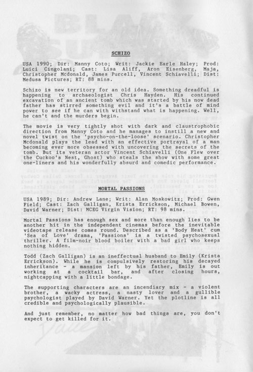 Films such as Toxic Avenger 3, Def by Temptation and Nightwish all fitted into the "enjoyable trash" category and Mortal Passions was so appallingly bad the entire audience laughed at it for pretty much the whole film (The film starred Zach Galligan who was famous for being the main character in Gremlins and was about next door neighbours having affairs and killing each other to hide their illicit secret romances).
